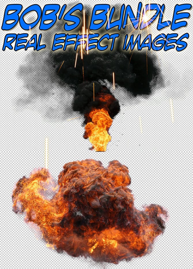 As used in our 3 Minute Max comic! An ever-growing collection of Bob's pre-keyed (transparent background) effects stills shot in 4K (8MP equiv.) for use in graphics, webcomics, book cover design, textures, and art in general. Fire, smoke, sparks, and more! The transparent backgrounds means these effects should simply drop into your Photoshop, Illustrator, or other high-end graphics program, ready for positioning, resizing, and/or desired filters. Over 400 real effects stills in the bundle so far and more will be added as Bob creates them! As a purchaser you will be notified each time new effects are added and they'll be yours to download for free! Get in early while the price is low - once you are a purchaser, you'll continue to receive free updates even if the price goes up! Royalty-free licensing document is included!